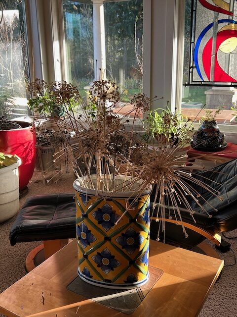 I saved some Allium this summer and made an indoor arrangement so we can enjoy them all winter long.