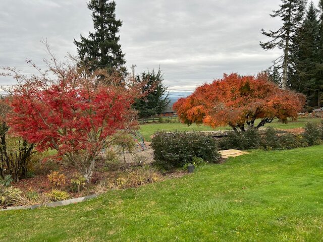 You can hardly see the Japanese maples, since they have dropped their leaves.