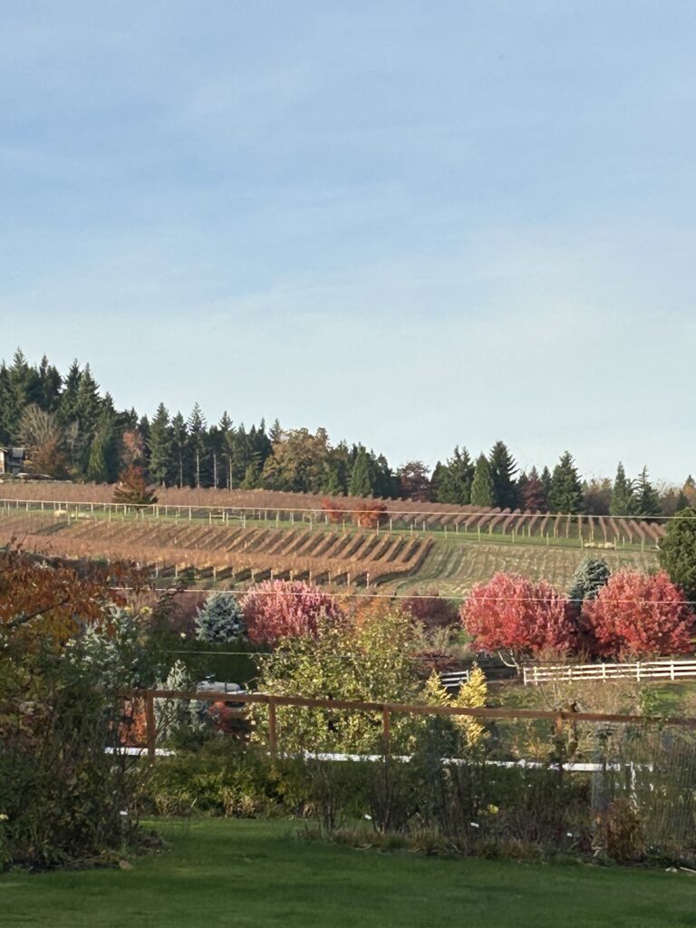 This was in November, but oh, what a view of Petes Mountain Winery–just two doors away (and a looong walk) from our property!