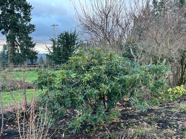 Despite the rain and cold, we know that Spring is right around the corner, because here is my favorite red Rhododendron already budding out!