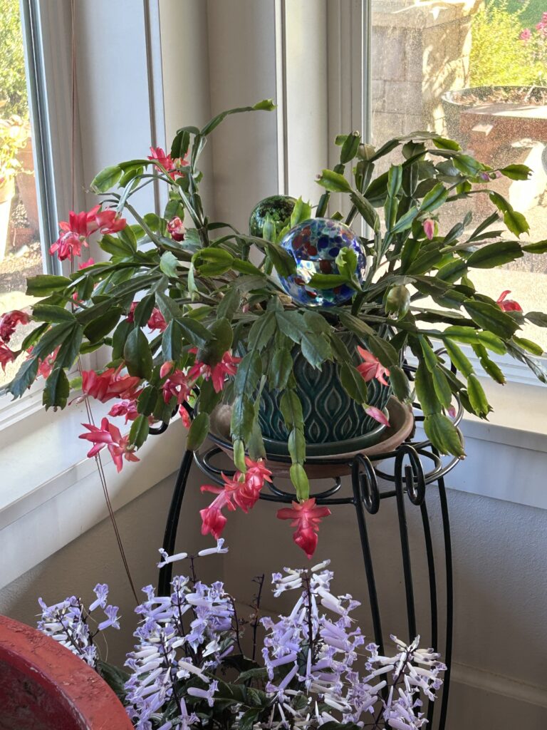 And here’s our Christmas Cactus–back in November just after Halloween. It bloomed early this year!